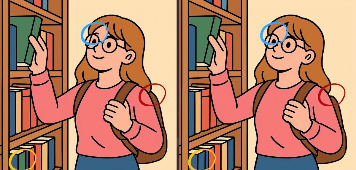 Tak co, jste připraveni na další výzvu? Podívejte se pozorně na dva obrázky dívky, která si vybírá knihy v knihovně. Na první pohled mohou vypadat stejně, ale jsou mezi nimi tři malé rozdíly. Myslíte si, že je všechny najdete za 19 sekund? Zkuste to a otestujte svou ostrost zraku!